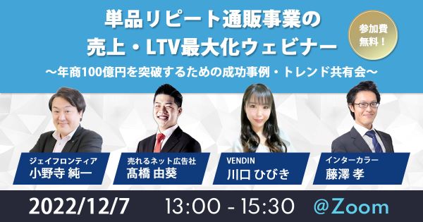 【12/7 WEB】単品リピート通販事業の売上・LTV最大化ウェビナー~年商100億円を突破するための成功事例・トレンド共有会~