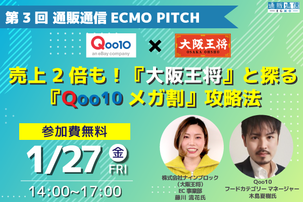 【1/27 WEB】第3回 通販通信ECMO PITCH(ピッチ) ~ 売上2倍も!『大阪王将』と探る『Qoo10メガ割』攻略法~