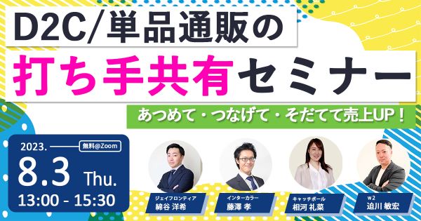 【8/3_WEB】D2C/単品通販の打ち手共有セミナー~あつめて・つなげて・そだてて売上UP!~