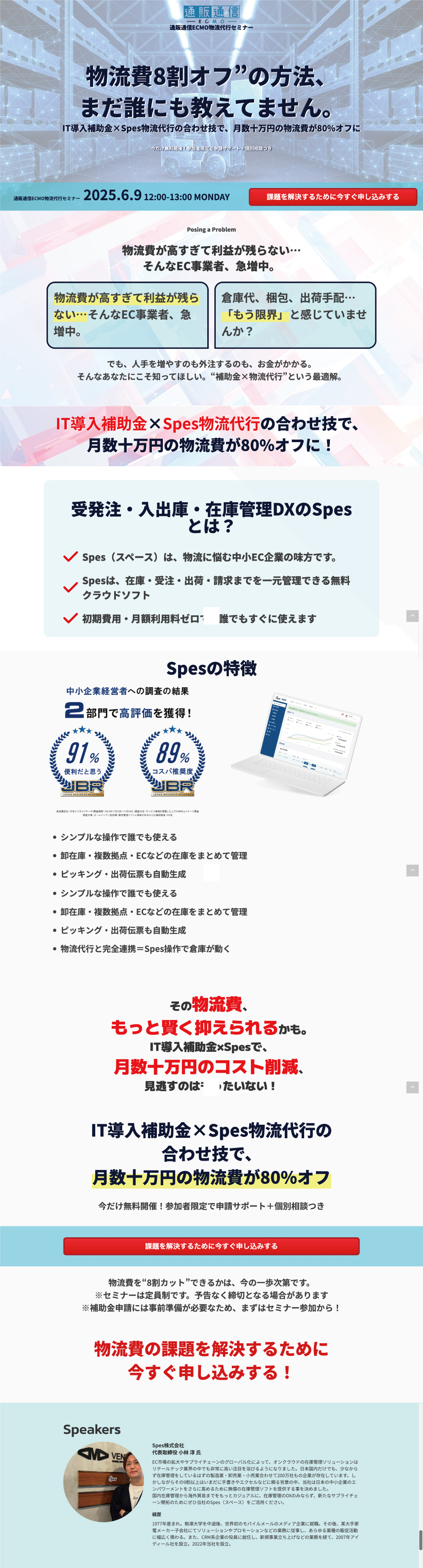【6/9_WEB】物流費8割オフ”の方法、まだ誰にも教えてません。 IT導入補助金×Spes物流代行の合わせ技で、月数十万円の物流費が80%オフに