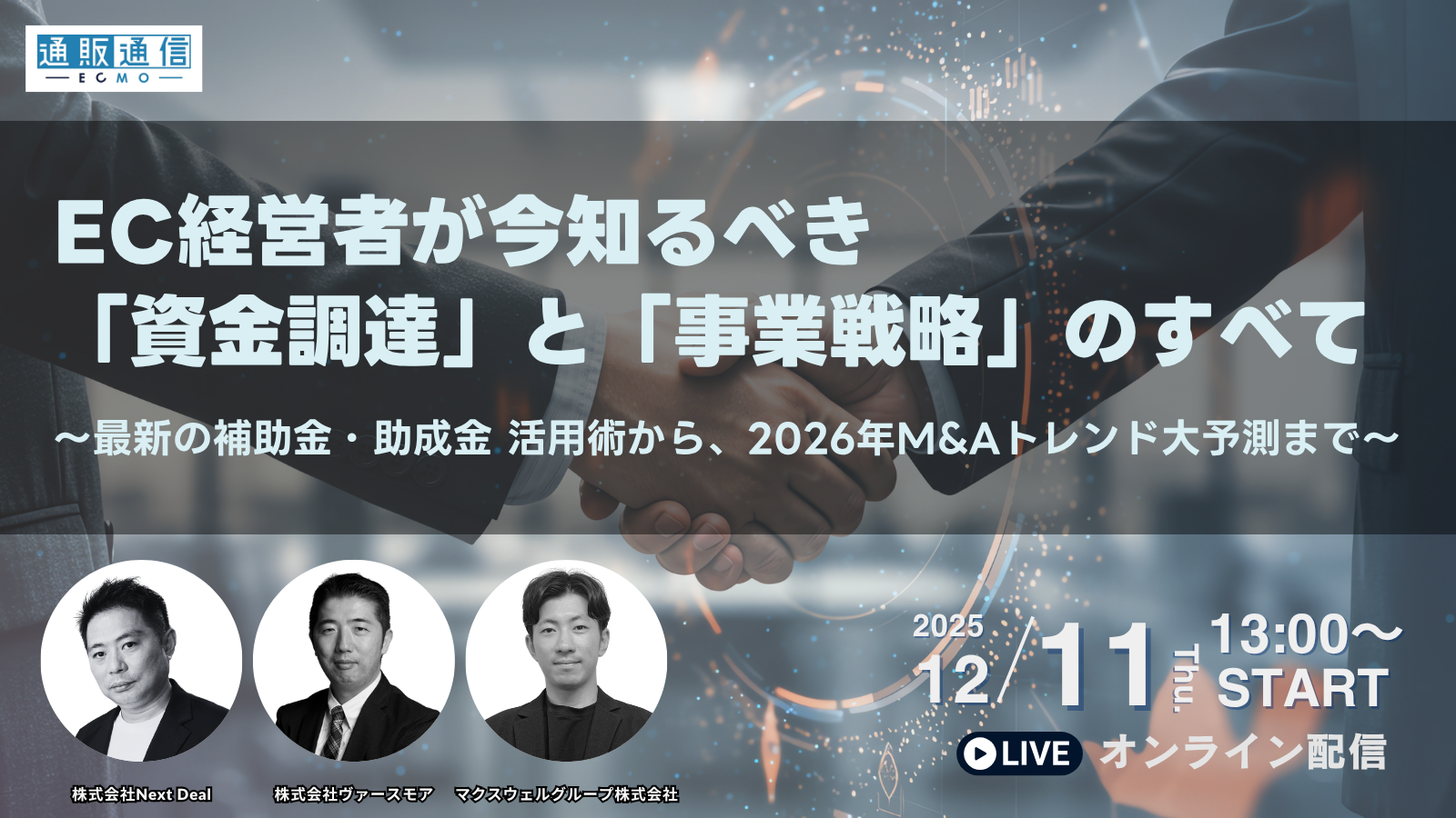 【12/11_WEB】EC経営者が今知るべき 「資金調達」と「事業戦略」のすべて 〜最新の補助金・助成金 活用術から、2026年M&Aトレンド大予測まで〜