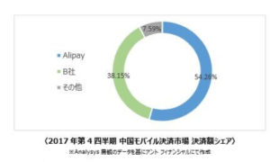 中国市場でのアリペイ決済額シェアが54.3%に -