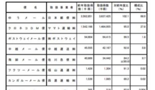 「ゆうパック」荷物個数が38.5%増…17年宅配便取扱実績 -