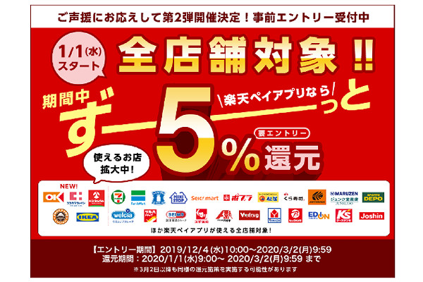 楽天ペイ、スーパーポイント還元キャンペ…最大6%バック -