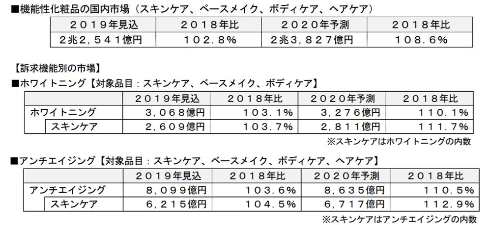 19年「機能性化粧品」市場規模、2.8%増の2兆254... -