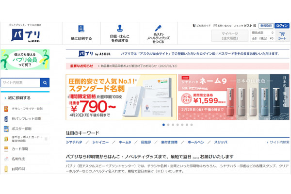 アスクル、印刷ネットサービス「パプリ」の個人向けサービス開始 -