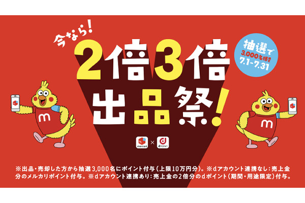 メルカリ、「2倍3倍出品祭」開催…売上金の2~3倍をd... -