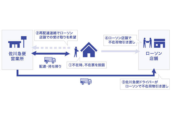 不在再配達の商品をローソンで受取、佐川急便が山梨で実証... -