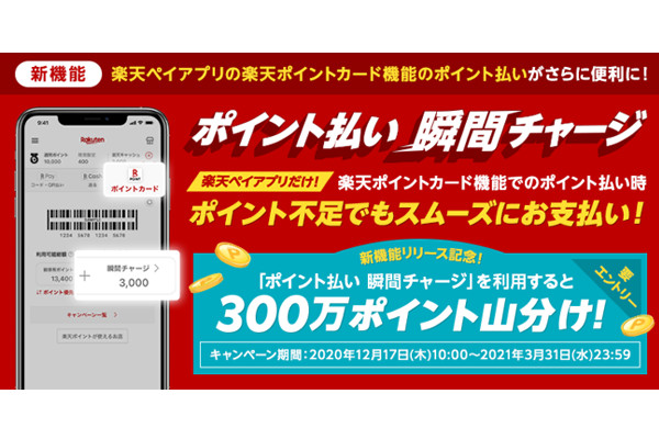 楽天ポイントカード「ポイント払い 瞬間チャージ」でキャ... -