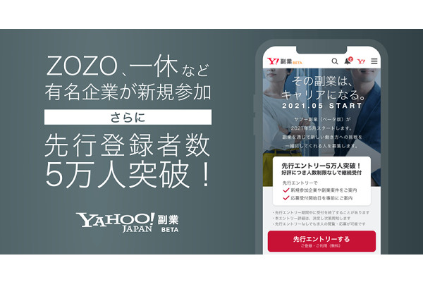 Yahoo!副業、先行登録5万人突破…ZOZOや一休も... -