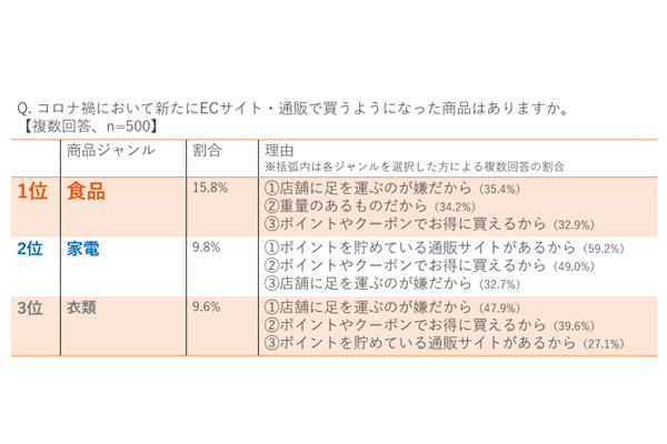 コロナ禍で新たにEC購入した商品、1位「食品」・2位「家電」 -
