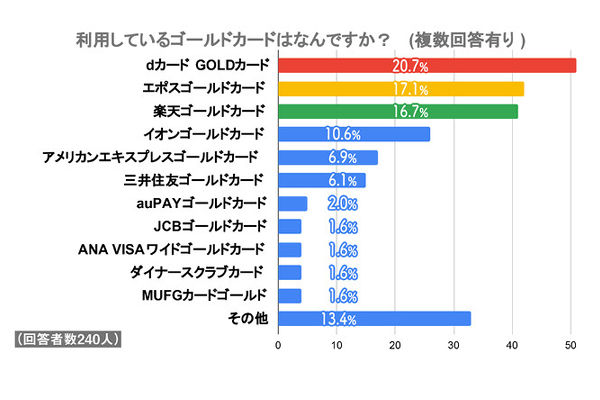 利用しているゴールドカード、1位は「dカードGOLD」 -