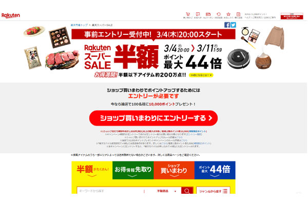 「楽天スーパーセール」が4日から開始、新生活特集なども併催 -