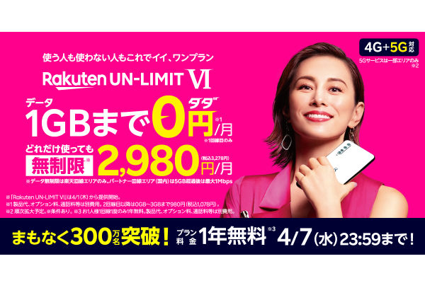 楽天モバイル、契約数300万人突破へ…4月に無料キャン... -