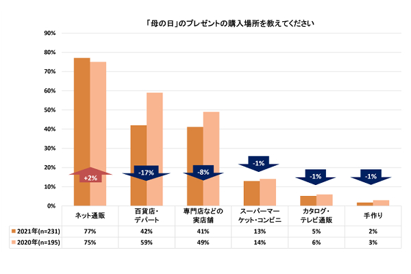 母の日ギフト、77%が「通販で購入」…人気1位は「スイーツ」 -