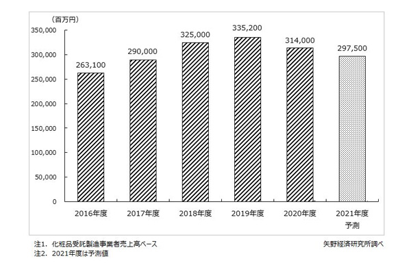 20年化粧品受託市場、6.3%減の3140億円…コロナ... -