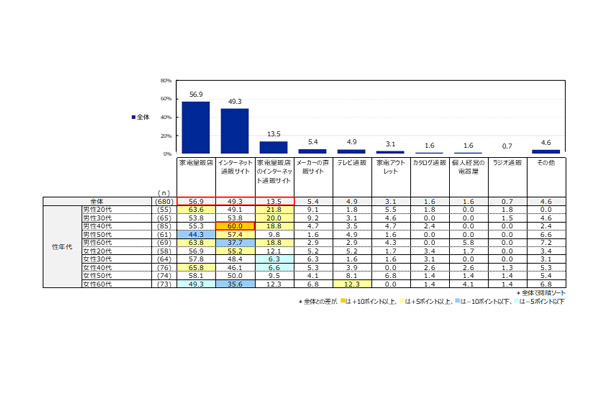家電購入場所、「ネット通販」が「家電量販店」に肉薄…4... -