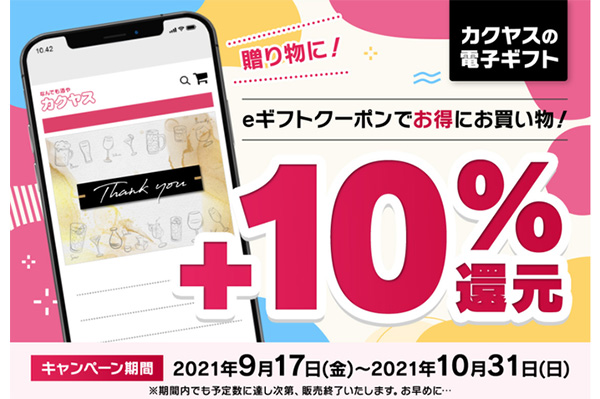 カクヤスネットショップで『eギフト』クーポン+10%還... -