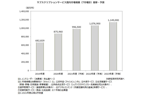 21年サブスク市場、13.8%増の9965億円…コロナ... -