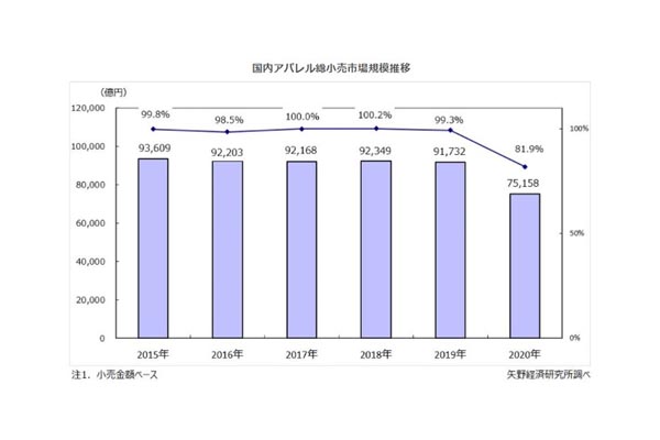 2020年国内アパレル市場規模、19%減の7兆5158... -