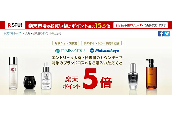 店頭購入でポイント5倍!楽天市場と大丸・松坂屋でコスメ... -