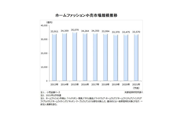 20年国内ホームファッション小売市場規模、微増の3兆3... -