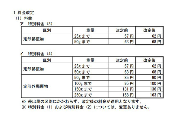 日本郵便、4月1日から「郵便区内特別郵便物」を5円値上げ -