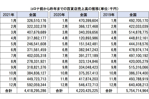 2021年百貨店売上高、楽天グループの国内EC流通総額... -