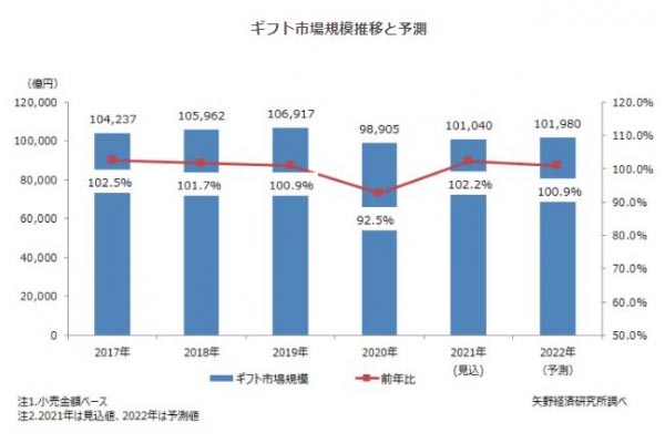 21年ギフト市場は2%増の1040億円、フォーマル↓カ... -