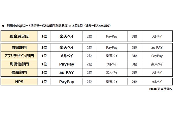 QRコード決済、総合満足度1位は「楽天ペイ」・NPS1... -
