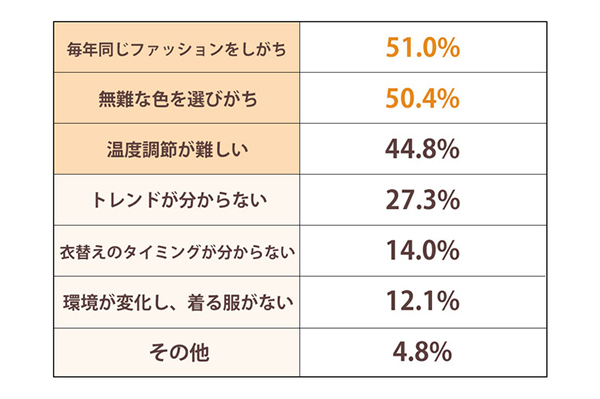春のファッションに関する悩み、51%が「毎年同じファッ... -