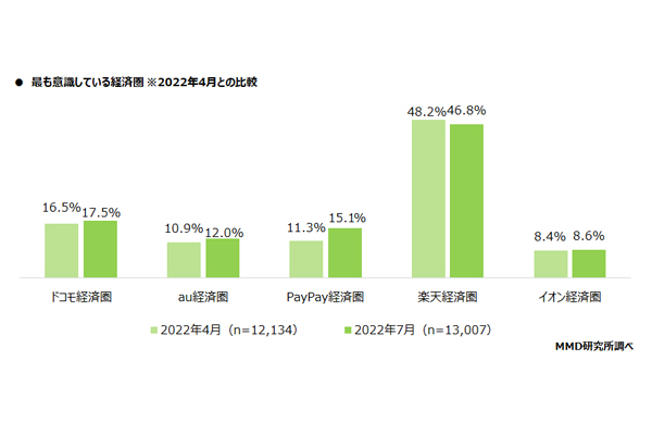 メインで利用する経済圏の「総合満足度」、1位はPayPay -