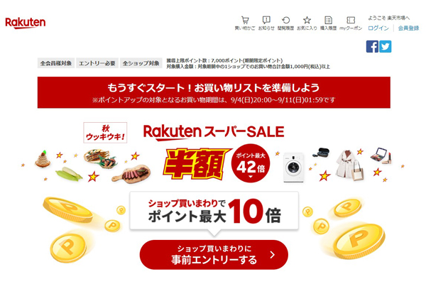楽天最大のセールイベント『楽天スーパーSALE』を4日に開催 -