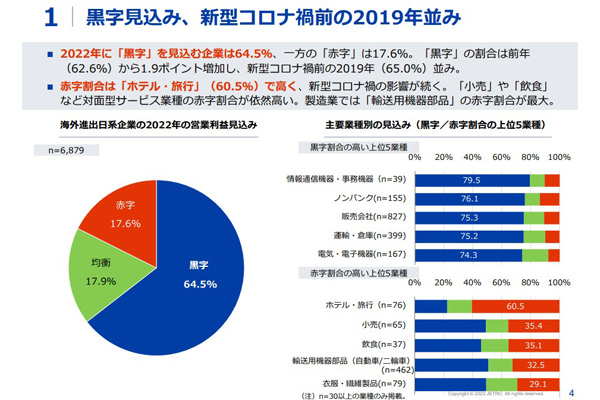海外進出の日系企業、22年は65%が黒字化見込・中国は... -