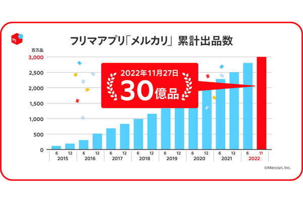 「メルカリ」累計出品数が30億品を突破、物価上昇で利用... -
