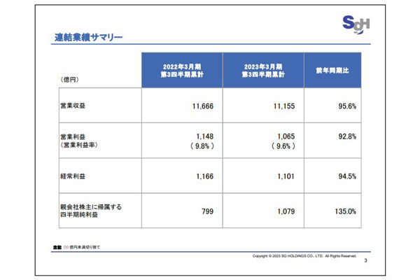 佐川急便3Q、荷動き鈍化で減収減益に -