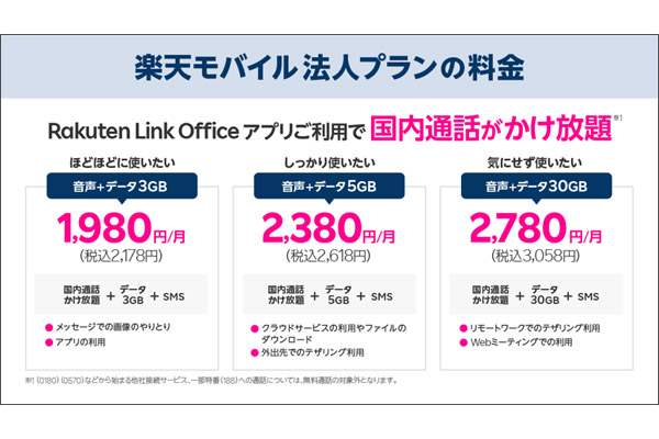 楽天モバイル、法人向け携帯キャリアサービス開始…通話し放題も -