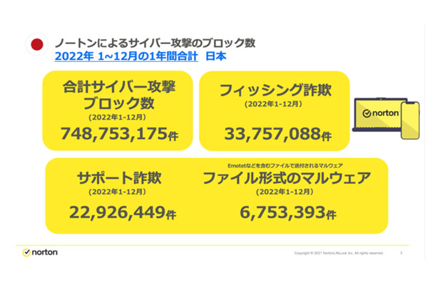 ノートン国内サイバー攻撃ブロック数、22年は約7億48... -