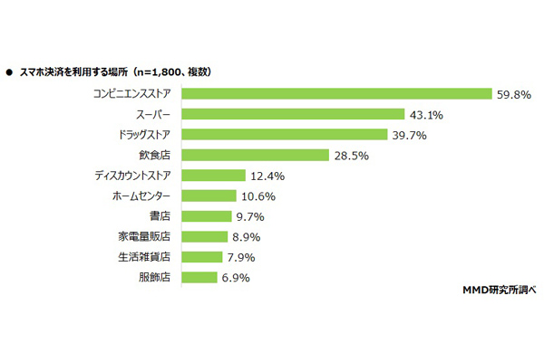 スマホ決済の利用場所、上位はコンビニ・スーパー・ドラッ... -