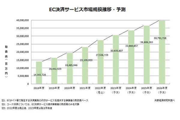 国内EC決済サービス市場、23年度に初の30兆円台と予... -