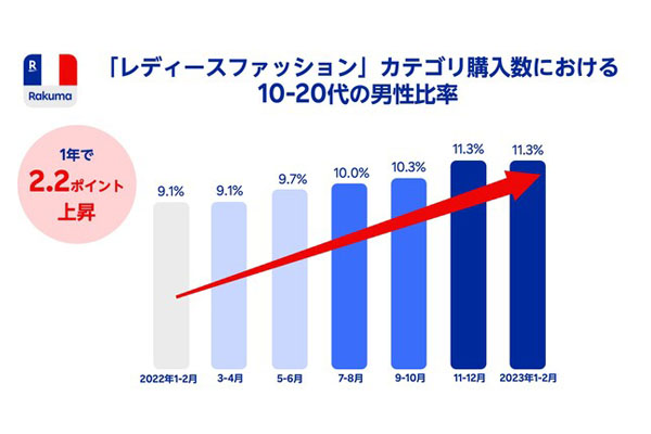 「レディース」カテゴリの取引で若年男性の比率が2.2p... -