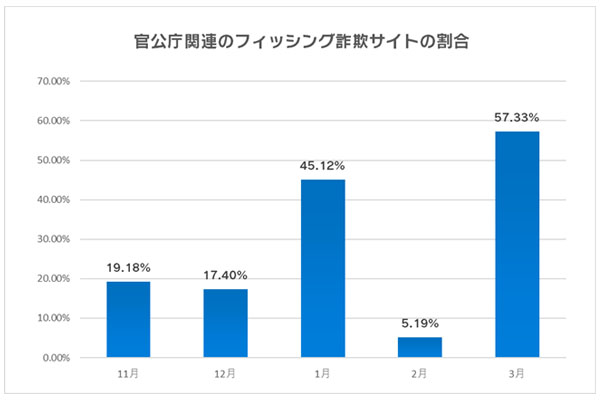 3月のネット詐欺、官公庁関連の詐欺サイトの割合が50%以上に -