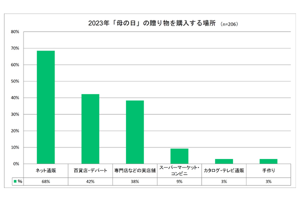 「母の日」のプレゼント購入場所、1位は68%で「ネット通販」 -