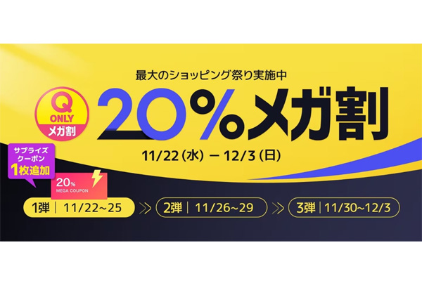 Qoo10、ブラックフライデー「20%メガ割」を12月... -