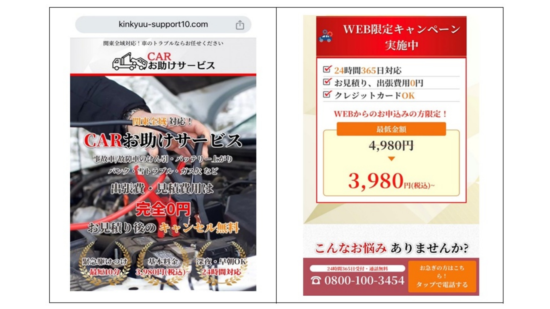 ロードサービスのウェブサイトで低額料金を強調→コールセ... -