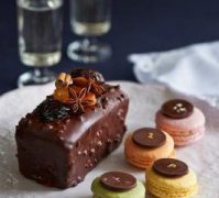 『エル・ア・ターブル』がプロデュースする食品第1弾は、「パン・デピス・オ・ショコラとマカロンのセット」。白ワインやシャンパンとともに楽しめるスウィーツで、スパイスをたっぷり入れたフランスの伝統菓子をアレンジした「パン・デピス・オ・ショコラ」(1本)と、パステルカラーが可愛らしい「シャンパン風味のマカロン」(4個)のセットとなっている。価格は3570円(税込)。