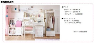 「Rubanchou for Kids」では、吉川さんのブランドコンセプトである、リボンモチーフの装飾を施した学習デスクやおもちゃラック、メリーゴーランドをイメージしたカーテンなどを販売。 また、メインラインの「Rubanchou」からは、現在展開している家具やファブリックに加え、マットやタオル、 iPadケースやデジカメケースなどの新規商材を発売した。
