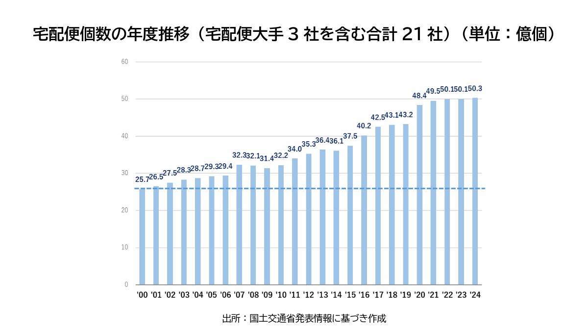 2024年度の宅配便個数は50.3億個だが、うち半数は“非”ECと想定される