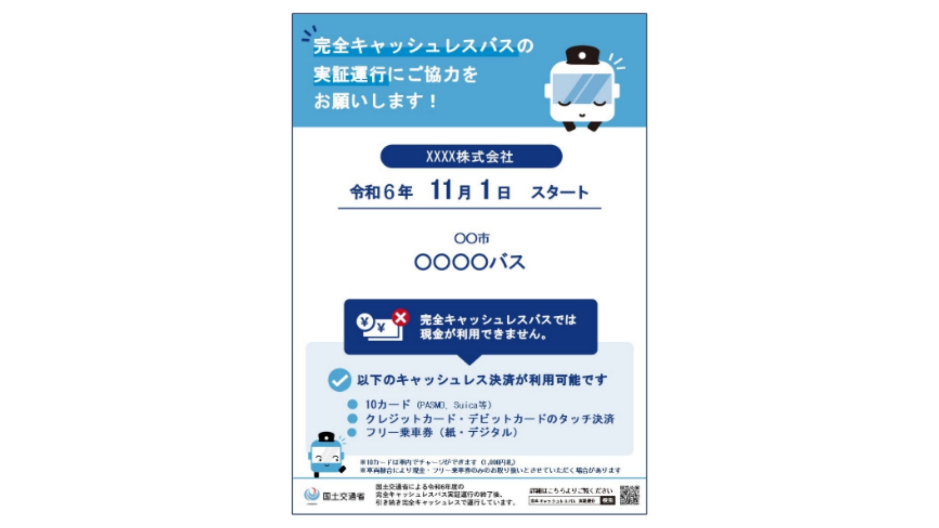 完全キャッシュレスバス実証運行の周知ポスター(出典:国土交通省)