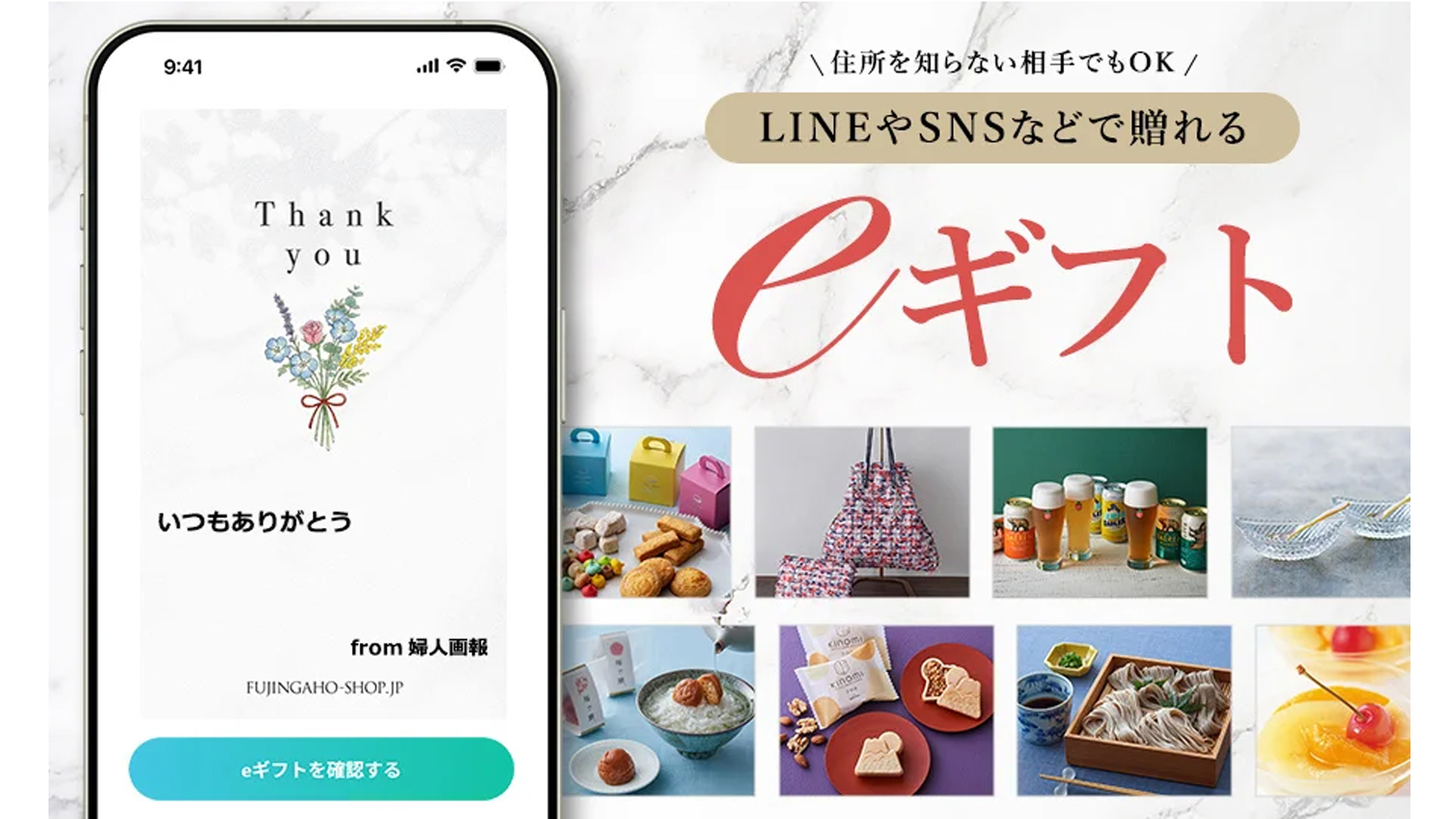 ハースト婦人画報社は1月29日、リンベルと共同運営するEC事業「FUJINGAHO-SHOP(婦人画報のお取り寄せ)」で、eギフトサービスの提供を開始した。ギフトの贈り先に、LINEやSNSのダイレクトメッセージなどによって「受け取りURL」を送信するだけで、ギフトを贈ることができる。